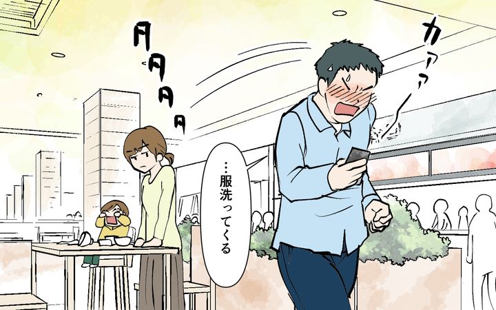 そして休日に出かけた先のフードコートで、子どもがうどんをこぼしてしまい夫のスマホが濡れてしまう。すると夫は子どもに怒鳴ったあげくに妻のせいにしてきて…。ついに妻は、「じゃあスマホと結婚しなさいよ!」とキレてしまうのだった。