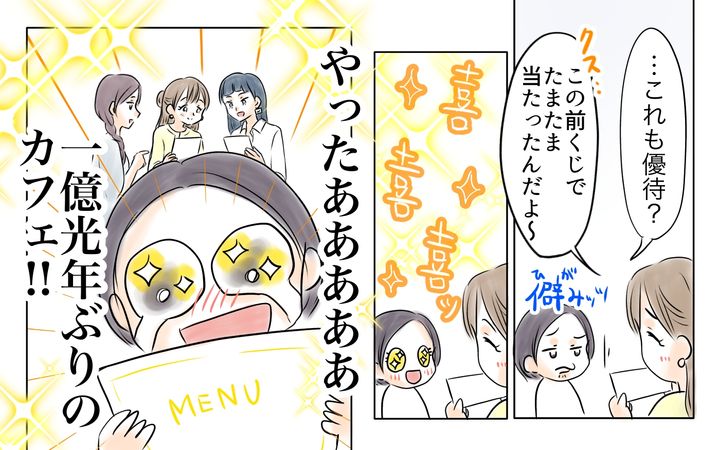 日々節約して、贅沢もしていないのに、どうしてこんなにみじめなんだろう。同じ地域に住んで、結婚して、子どもがいて…いろんなことが似通っているのに、生活のレベルにどうしてこんなに違いが出てしまうんだろう。そんな風に思っている中、カフェに誘われて…。