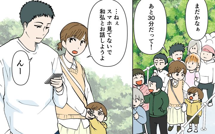 2. 何のために一緒にいるの? 家族のお出かけでもスマホを見続ける夫< じゃあスマホと結婚したら? 5話>【うちのダメ夫 まんが】