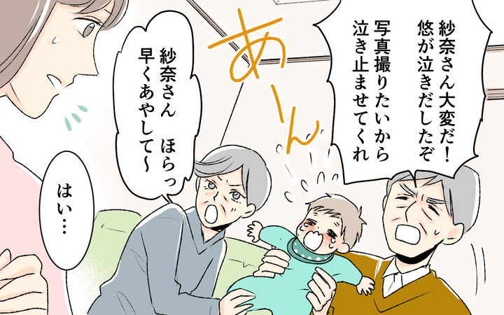 義父母の要求で1日3回のビデオ通話を続けていた紗奈だったが、彼らから悠や自分への思いやりが全く感じられず、もうやめたいと夫に宣言する。その後義父母とも話し合い、ビデオ電話の頻度を平日1回は紗奈、休日は夫の担当にすることに。適度な距離ができ、平和にやっていけるかもと思った矢先…また事件が起きる。