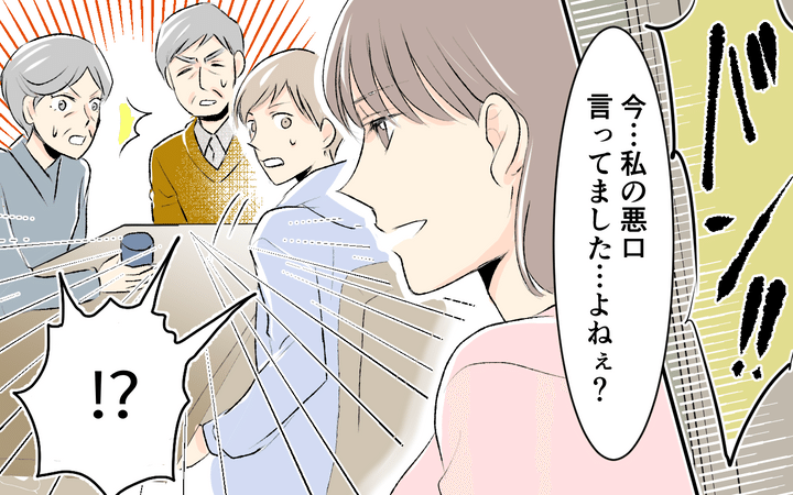 義父母が私の悪口を言っているだけじゃなく、夫までもがその悪口に同調するようなことを言っているのが聞こえてしまい、私はその場で「悪口言ってましたよね!?」と突撃したのです!