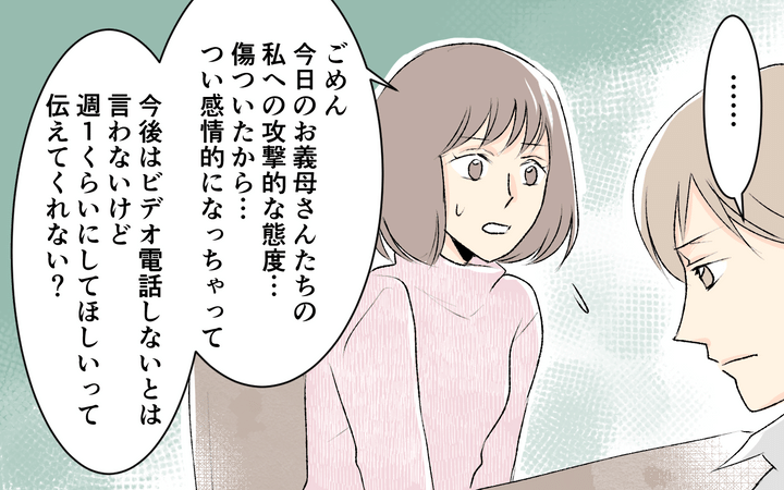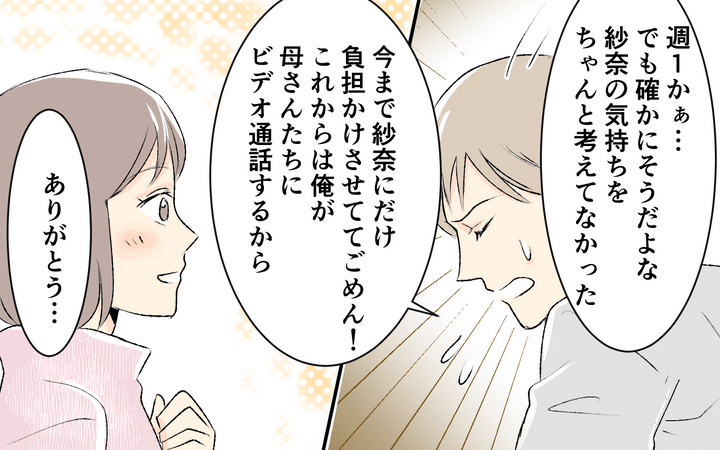 「ビデオ通話をせめて週1にしてほしい」と夫にお願いすると、夫が「これからは俺がビデオ通話をする」と約束してくれました。