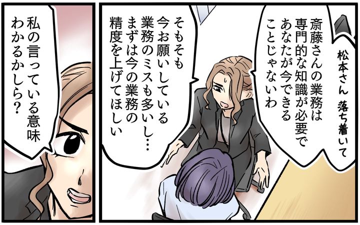 松本さんは、上司の七瀬さんに私と松本さんの担当業務を交換するよう迫ったそうなのですが…。