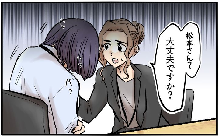 そんな彼女が業務上で大きなミスを犯してしまう。最終的に志織が対応したことで事なきを得るが、松本はショックを受けてしまう。そんな松本の腕にはあざの跡が…。