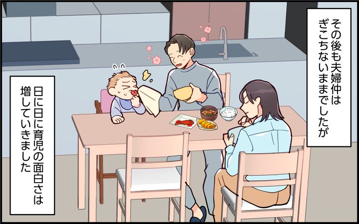 身振り手振りで感情を伝えてくれるようになったり、離乳食で食べられる食材が増えたり…。育児の時間が多くなったことで、今まで知り得なかった駿の成長と喜びを感じることができるようになりました。相変わらず千恵は冷たいですが…。