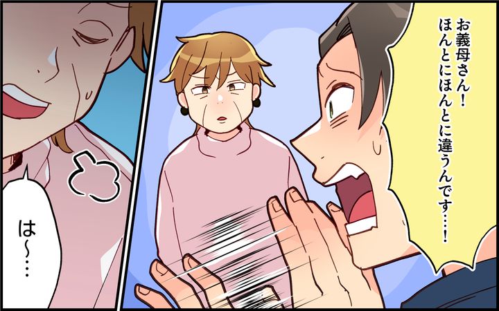 そこに現れたのは義母。さすがにまずい、と俺は必死に弁解をしてはみたのですが、義母の反応は…。