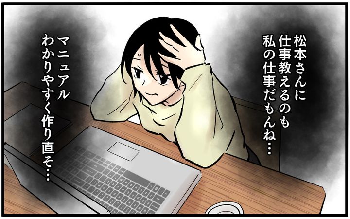 松本さんのミスが減らないことには自分の業務も終わらない…。そう思った私は、マニュアルをわかりやすく作り直すことにしました。これまで教育係になったことがなかった私は、少しでも期待に応えようと思ったのです。でも、私の努力は松本さんには通じることはなく…。