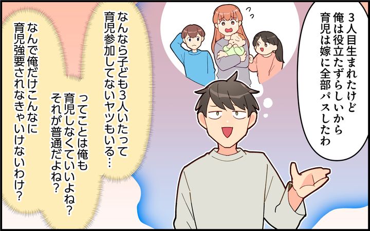 自分にとってはその環境が当たり前なので、「なぜ俺だけ育児を強要されなきゃいけないのか?」とずっと不満に思っていました。