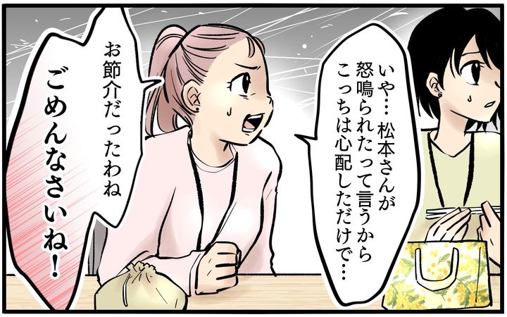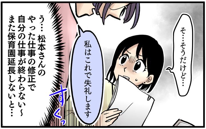 そして仕事の面ではさらに困った事態となっていました。教えてもミスを連発する松本さん。でも間違った場所をあらためて教えようとしても、自分の問題だと認めないために、ずっとミスが連発するといった状況に。
