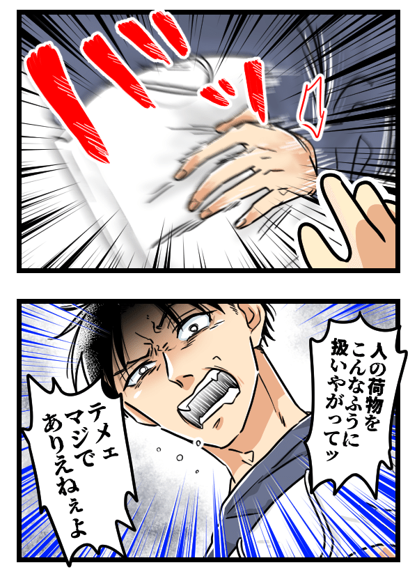 当然ながら、イケ杉さんはブチ切れ。それに、「人の荷物をこんなふうに扱った」ってどんな意味なんでしょう…。