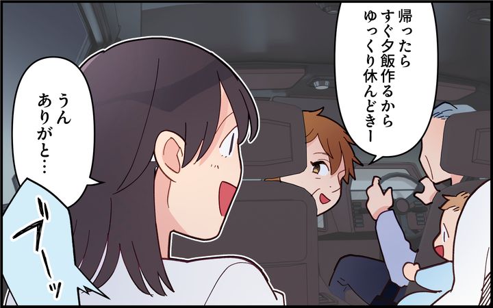 実家の父と母に気遣ってもらい、ふぅっと車で一息ついたとき…。