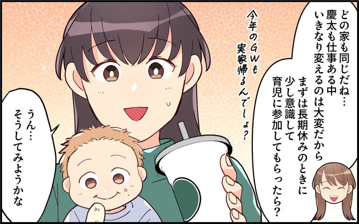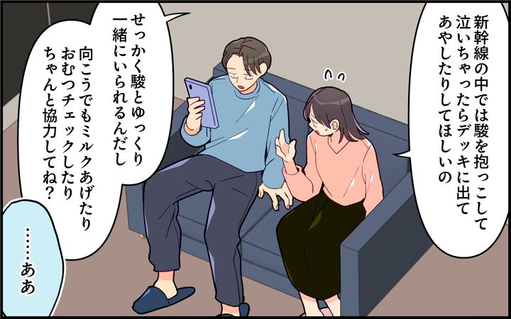 そんな由佳子のアドバイスもあり、次のゴールデンウィークに私の実家に帰省する際、移動中も含めて駿のお世話に協力してもらうよう、事細かにタスクを洗い出してお願いしました。