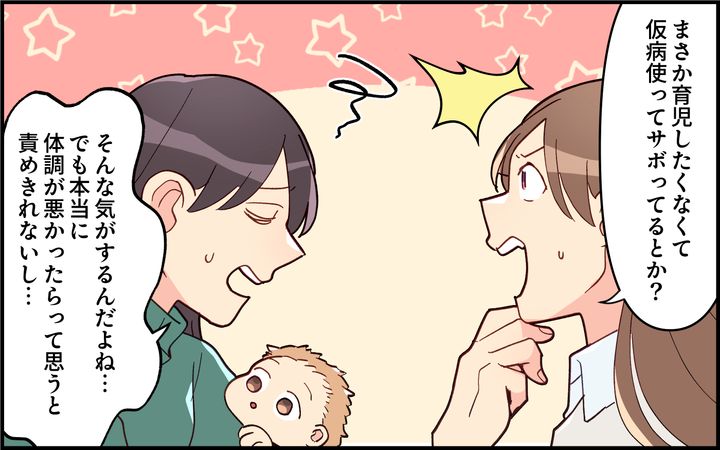 こうして、夫にろくに育児を任せられないまま、息子は保育園に入園。数週間後、息子が胃腸炎にかかり、数日後には千恵も感染してしまう。病院から帰って休んでいると、しばらくして夫が「俺も気分が悪くなってきた」と言い出す。
