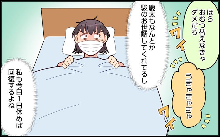 今日1日でなんとか回復したい…! 夫もお世話を頑張ってくれている声が聞こえていたので、とにかく睡眠をとって回復を図ることにしました。しかしー。