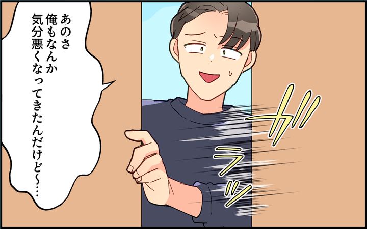 次の作戦として、夫に息子を任せて美容院へ。しかし、到着から10分で「腹痛がヤバい」と連絡が!仕方なく急いで帰ると、夫は「ストレス」だといい、薬は飲まずにそそくさと寝室に行ってしまう。その夜、「寝たら治った」とカップ麺を食べる夫に、千恵は「ほんとかな」と疑念を持ち始める。