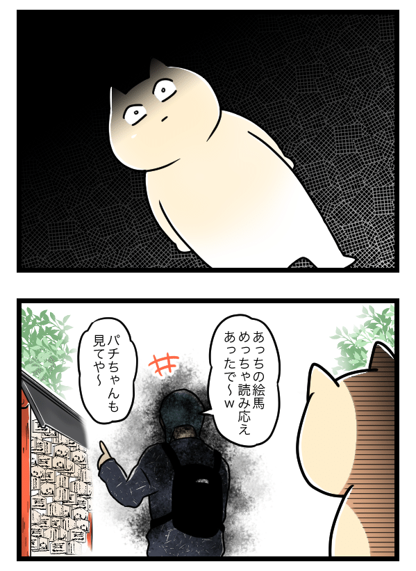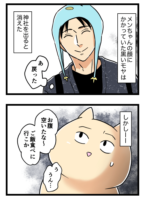 参拝を終えたとき、後ろから声をかけてきたのはイケメン彼氏・イケ杉だった。しかしパチ美が後ろを振り返ると、イケ杉の顔はなぜか黒いモヤで覆われていた。雰囲気も禍々しく、パチ美はいつもとはまるで違うイケ杉の姿に鳥肌が立ち、恐怖におびえてしまう。これがお参りの効果なのかと驚いていると、イケ杉がスマホを手にしていることに気づく。もしやと思い、お参りしてるところを動画で撮っていたのかと尋ねると、イケ杉は「当たり前やん」とほほえむ。その様子を見て、パチ美は「気持ち悪い」とゾッとして…。