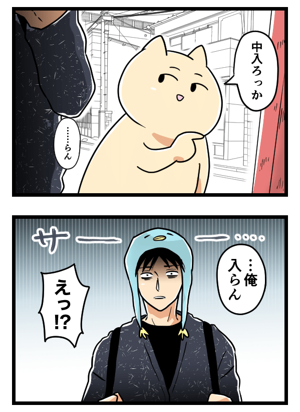そうして辿り着いた目的の神社。さっそく中に入ろうとすると、あれほど楽しみにしていたイケ杉さんの様子がおかしく、「俺、入らん」と参拝を拒否。