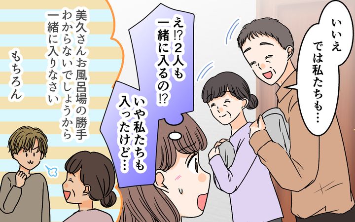 義父母はこの日、ずーっと一緒にいて、とくに義父は義母が少しでも自分から離れると「どこに行ったんだ!?」とすごく不安そうにしていました。さらに私たちの前でもお構いなしに、義母が義父の耳かきを当たり前かのようにしている姿に唖然としました。もちろん、お風呂も寝るタイミングも一緒です。