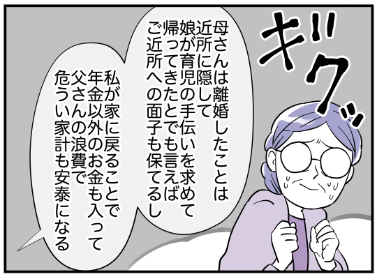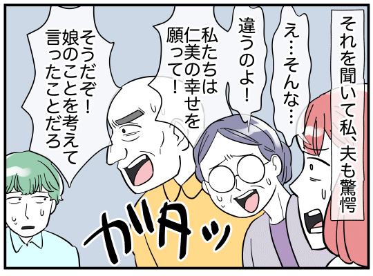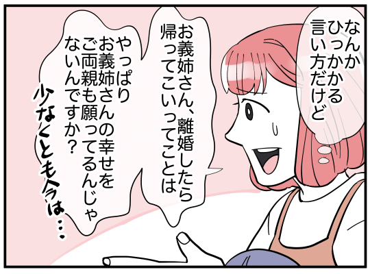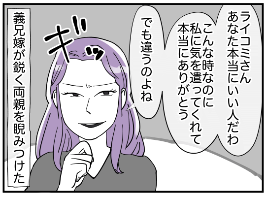 義兄嫁に過去の話を暴露されてもなお、「離婚して実家に帰るべき」との意見を通そうとする義兄嫁両親。一見、娘を心配する親心のようにも見えますが、内情は違っていたのです…。
