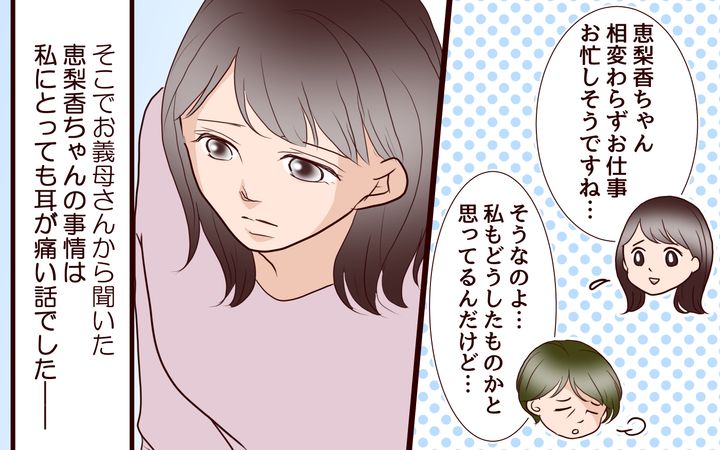優しい義両親とはいい関係を築けているものの、義妹・恵梨香は子持ちに対して厳しいため、さくらは子連れで会うのは避けるほうがお互いにとって良いと思っていた。