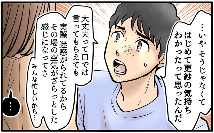 この気持ちを夫にわかってもらえないことでイライラしてきましたが、夫も実際にあの空気感を経験し、気づいて歩み寄ってもらえたことがうれしかったです。