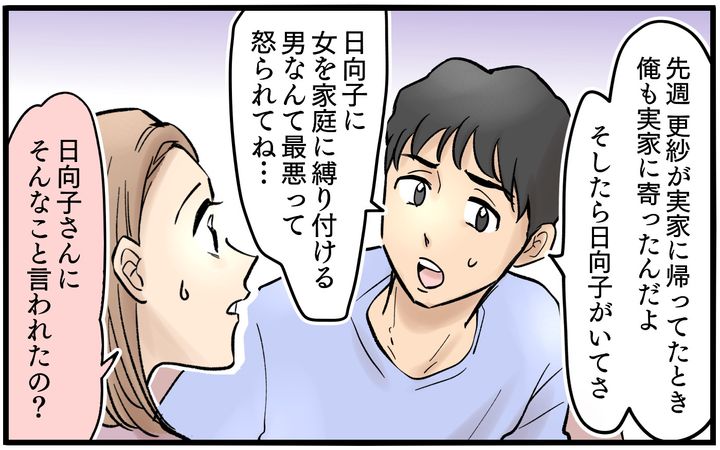 仕事に情熱を持って取り組む姿勢が魅力的だった更紗と結婚した充。しかし育休から職場に復帰した更紗は、毎日ピリピリしていて疲れていた。見かねた充は、良かれと思って更紗に「仕事を辞めれば?」と口にするが、更紗からは「私は仕事がしたいのにどうして協力してくれないの?」と猛反発。そのことを妹・日向子に話すと、「女を家庭に縛りつけるようなことをするな」と叱られる。自分が妻を追い詰めていたとわかった充は、更紗に「話がしたい」と連絡をする…。。