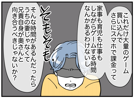 ゲームについて責められた義兄は、逆ギレでスルーしようとしますが、ライコミ夫&義兄嫁コンビがそれを許しません。