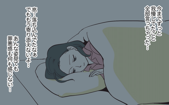 ある時、部屋を片付けようとした夫が、クローゼットから離婚届を発見する。慌てた夫は明るく手料理を振る舞うが、美穂が冷たい態度を変えることはなかった。その夜、夫が「離婚を考えているのか?」と聞くと、美穂は「今すぐ離婚とは思っていないけれど、あなたと添い遂げるつもりはない」といい…。