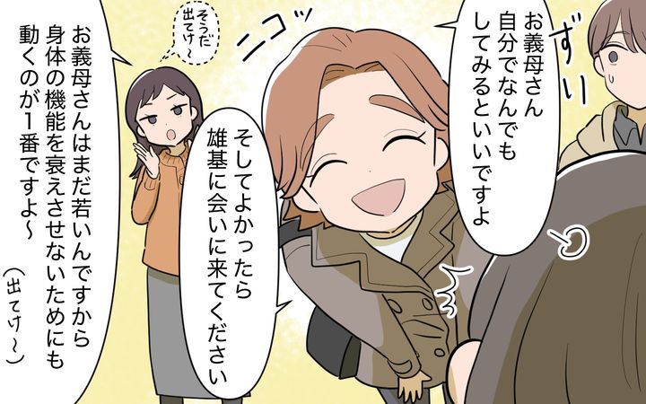 拓人がお義兄さんとお義母さんに家を出て行くよう宣告。しかも同居の一番の理由だった雄基くんがいなくなってしまったためにお義兄さんは観念したようでした。しかし我が家で、家事を私に任せっきりだったお義母さんは最後まで納得はしていなくて…。