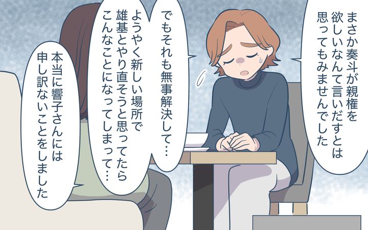 命令口調の奏斗の態度に怒りを感じつつ期限までと我慢した響子だったがその約束は破られ、拓人の態度に絶望して家を出てしまう。その状況にようやく拓人も改心し、母と兄を追いだすことに。その最中、義兄の元妻・梓が訪れ、奏斗が梓に何も知らせず引っ越したこと、親権を得るため拓人の家に同居したこと、さらに奏斗が大手弁護士事務所をクビになったことが明かされる。