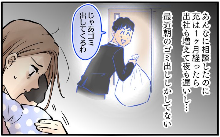 あれだけ育児に参加すると約束したのに、充がやることと言えば、朝のゴミ出し程度。家事も育児も、ほとんど私がやっています。