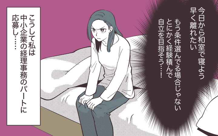 経理事務で入ったのに雑務が多く、正直思っていたのと違って辞めたくなりましたが…。「離婚するために働いているんだ」と自分を奮い立たせました。相変わらず夫は嫌味を言ってきますが、真面目に取り合うだけ時間と労力の無駄。最短で自立しようと地道に勉強をしていた時、想定外の話が舞い込んできて…。