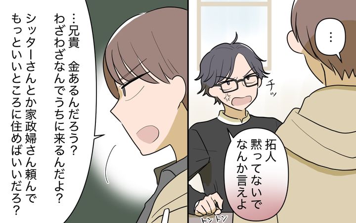 もうダメだと思っているのにそれでも拓人が何かを言ってくれるのか期待してしまいました。そして諦めかけた時、拓人がお義母さんとお義兄さんに出て行ってくれるよう声を荒げてくれたのです。