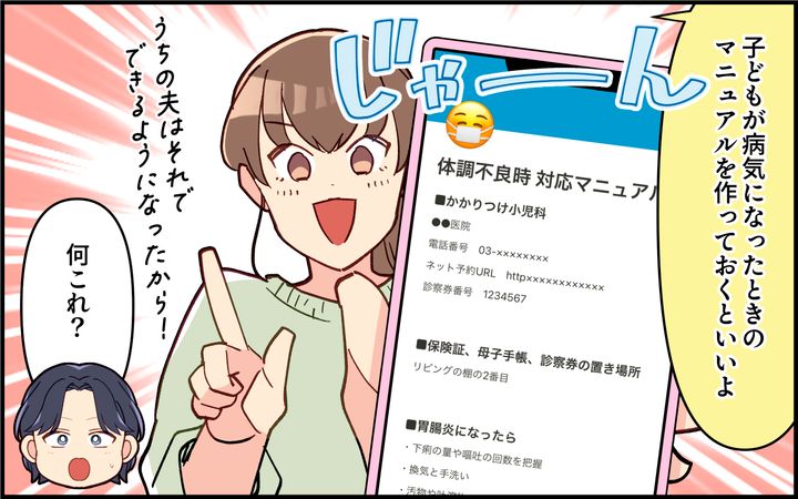 夫の戦力化計画!家庭内の非常事態マニュアルを作る!?<子どもの看病は妻の役目? 8話>【うちのダメ夫 まんが】