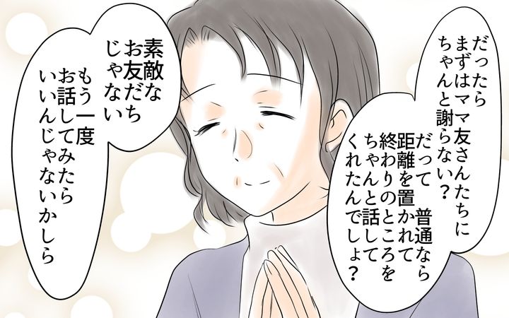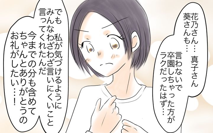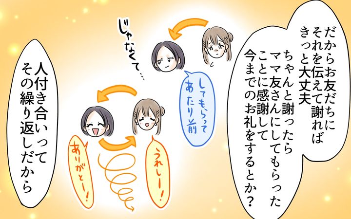 義母に言われて私はとてもママ友たちに恵まれていたのだと気づいたのです。普通だったら何も言わずに距離を置き、気づいたら周りに誰もいなくなるとなっていたはず。だけれども彼女たちは、そんな言いづらいことを言ってくれたのです。