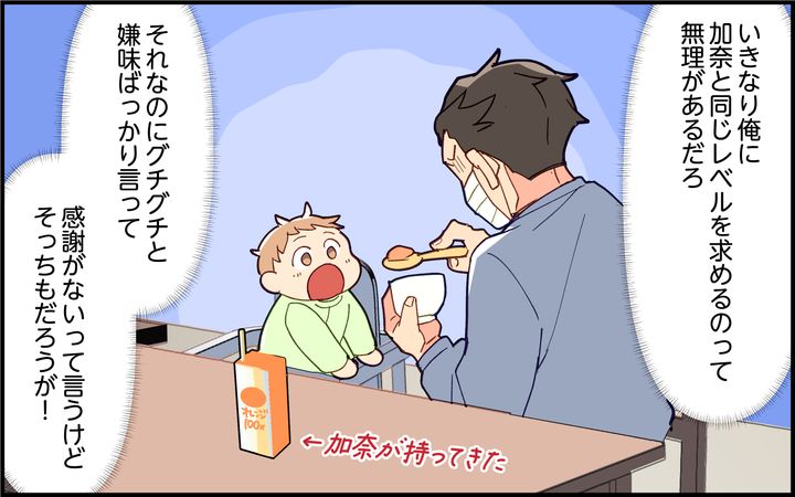 急に育児に参加することになったら、誰だって右も左もわからないはず。いきなり加奈と同じレベルを求められ、できなければ怒られるのは理不尽です。