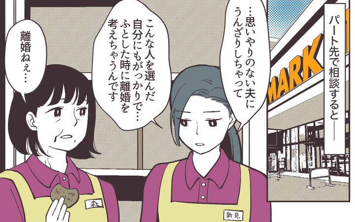 思いやりのない夫と別れたくなる気持ちをパート先の先輩主婦に相談しました。きっと少しはわかってもらえると思ったのですが、それは私のワガママだと一蹴されてしまったのです…。