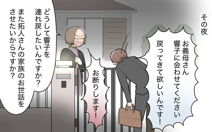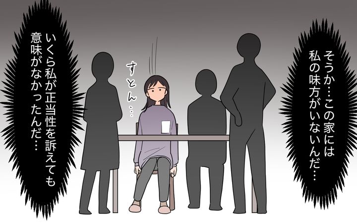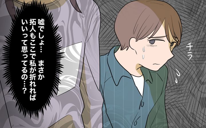 さすがにギリギリな状況になれば拓人は、私を守ってくれると思っていました。お義母さん、お義兄さんに囲まれた状況で、自分の家なのにかなりアンフェアな状況だったから。でも拓人は何も言ってくれず、しかも目では私に折れてその場を収めて欲しいそぶりまでしてきて…。