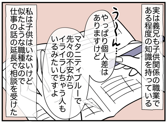 義兄嫁が里帰り出産をしていた頃、自分の実家で生活していた義兄。そこに居合わせたライコミさんは、初めて義兄から相談を受けたといいます。最初は真っ当な相談だったこともあり、真面目に聞いていたライコミさん。その姿勢が仇となって、執着されてしまったのです。