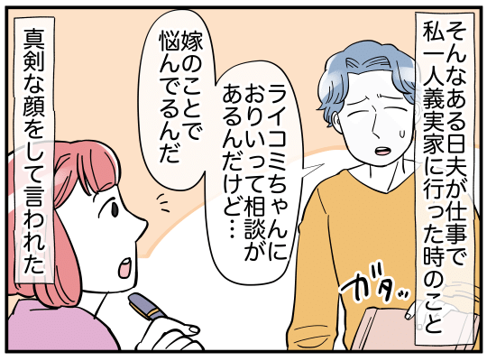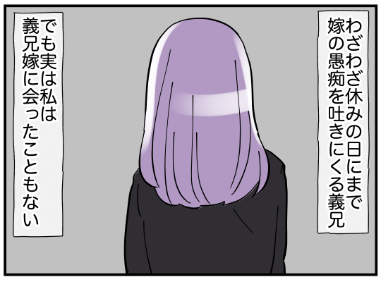 休日、一人の時間を満喫しようと思っていたライコミのもとに、「家にお邪魔していいかな?」と義兄からメッセージが届く。実は最近、“義兄嫁に対する悩み”を相談するため、義兄が頻繁に家に来るようになっていた。夫との結婚当初、ライコミのことを喜んで受け入れてくれた義兄。しかし数年後、義兄が結婚した際には「顔合わせはしない」「お祝いもしなくていい」と、夫はかなりドライだった。一方の義兄は、義実家などで会うたび義兄嫁の愚痴ばかり。さらに義母は、全面的にそれを擁護していて…。