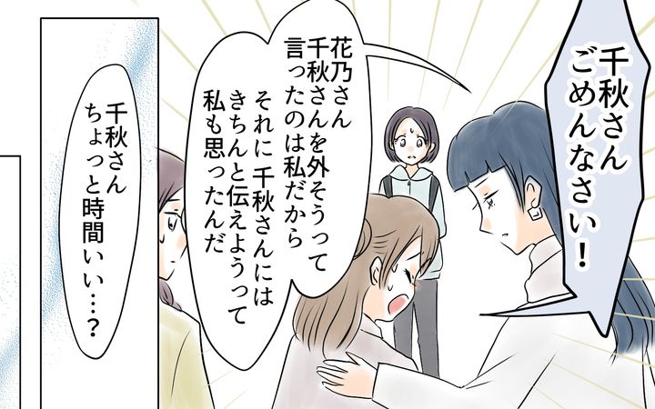 避けられている可能性に怯えつつも千秋は自分で考えた旅行企画をみんなに送るが、全員から既読スルーされてしまう。落ち込む千秋だったが、ようやくママ友と連絡が取れたことで安堵するが、久々に会ったママ友たちには「参加できない」と言われてしまい…。