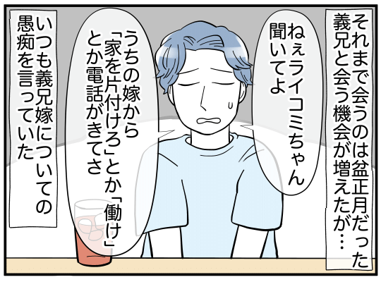 2. 「うちの嫁ヤバいよね…」愚痴ばかりの義兄がめんどくさい! しかも、夫は無関心?【義兄嫁は鬼嫁様 Vol.1】