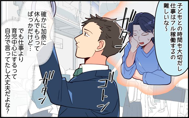 でも、仕事はそんなに簡単には休めない。それに、俺が看病するよりも加奈がした方が安心だし、息子も心細くないと思うんですよね。