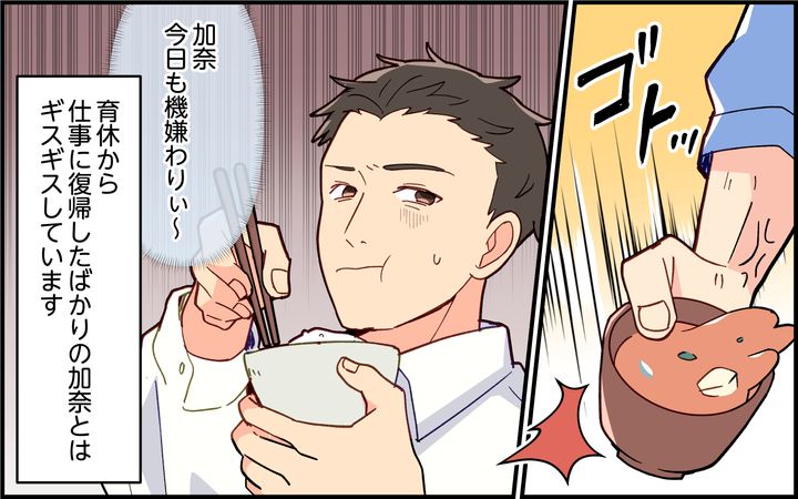妻は育休から仕事に復帰したばかり。まだ家事と育児のバランスが掴めず大変なのはわかりますが、何も朝からあんなにおっかない顔をしなくても…。