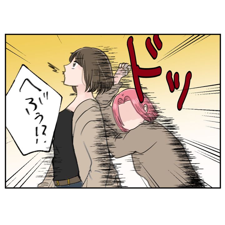 言いたいことを言って、スッキリとした面持ちでその場を立ち去ろうとすると、えいこは突然体当たりをしてきて…!