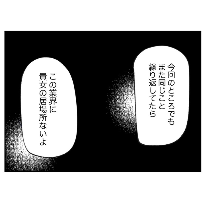 同じことを繰り返していたら自分の居場所はないことを伝え、「せいぜいクビにならないように」と言い捨てるのでした。