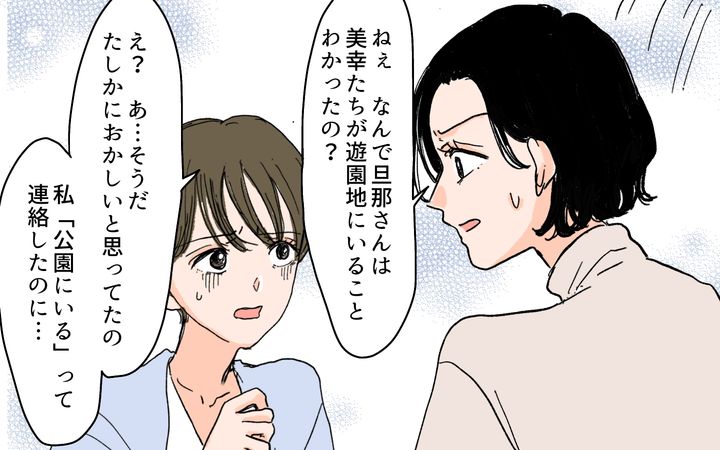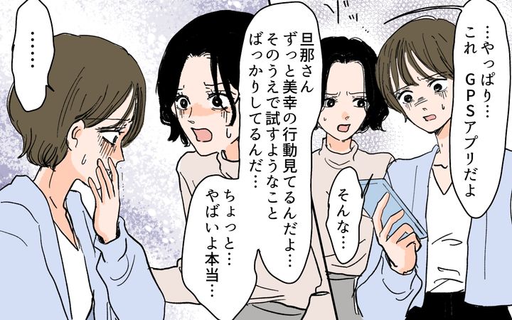 心配性すぎる夫から、執拗に試し行動を繰り返されていた美幸。接待先に夫が急に現れたり、夕飯はいらないと言いながら急に帰ってきたり…。不貞を疑われているのか、信頼されていないことに悲しくなる妻。ついには泊りがけ出張といっていたのに娘と遊びに行った遊園地に、夫が突然姿を現す。その恐怖から娘と友だちの家に避難したのだが、その家の前にも夫が現れて…!