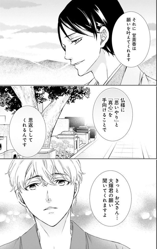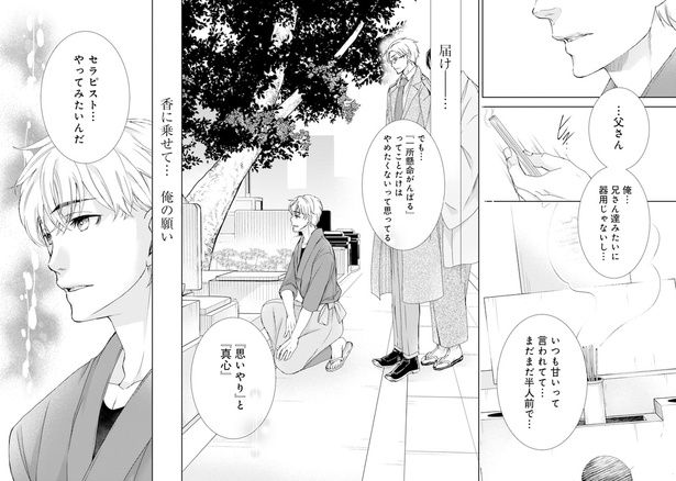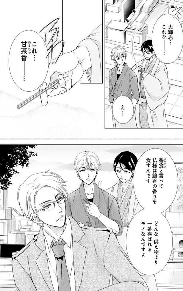 家族が病院を経営している瀬戸大輝は義務感で医師を目指していたが、二度目の医学部受験に失敗。これ以上、親に迷惑はかけられない…と絶望感にさいなまれていたとき、香老舗の若主人・栄薫に出会う。薫のお店に招かれた大輝は部屋に漂う香りに癒されてお香の魅力を知り、“お香のセラピストになって人を癒したい”という自分の夢を見つけるのだった。薫の元で香の道を学ぶ決意をした大輝は新たな人生を歩み出す――。京都を舞台に描かれる“お香”が紡ぐヒューマンストーリー『京の都の香の路』(全3巻)を好評につき再掲載でお届けします!