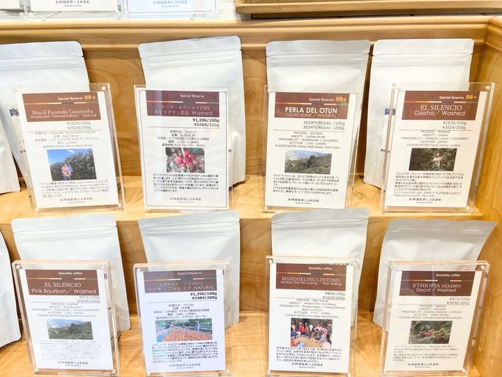 AMBER & JADE ROASTERSでは、使用する珈琲生豆には徹底してこだわっていました。豆はすべて、珈琲豆の国際品評会「カップ・オブ・エクセレンス(COE)」で評価される、スペシャルティコーヒーの中でもトップクラスのものだけを使用しているそうです。