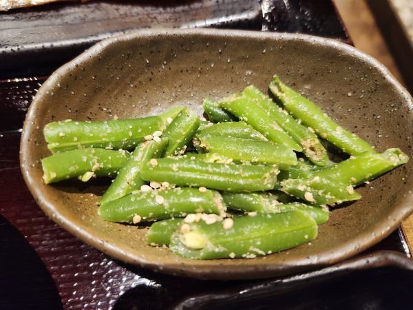追加した「いんげんごま和え」は、歯ごたえがあり、ごまの香りが食欲をそそります。